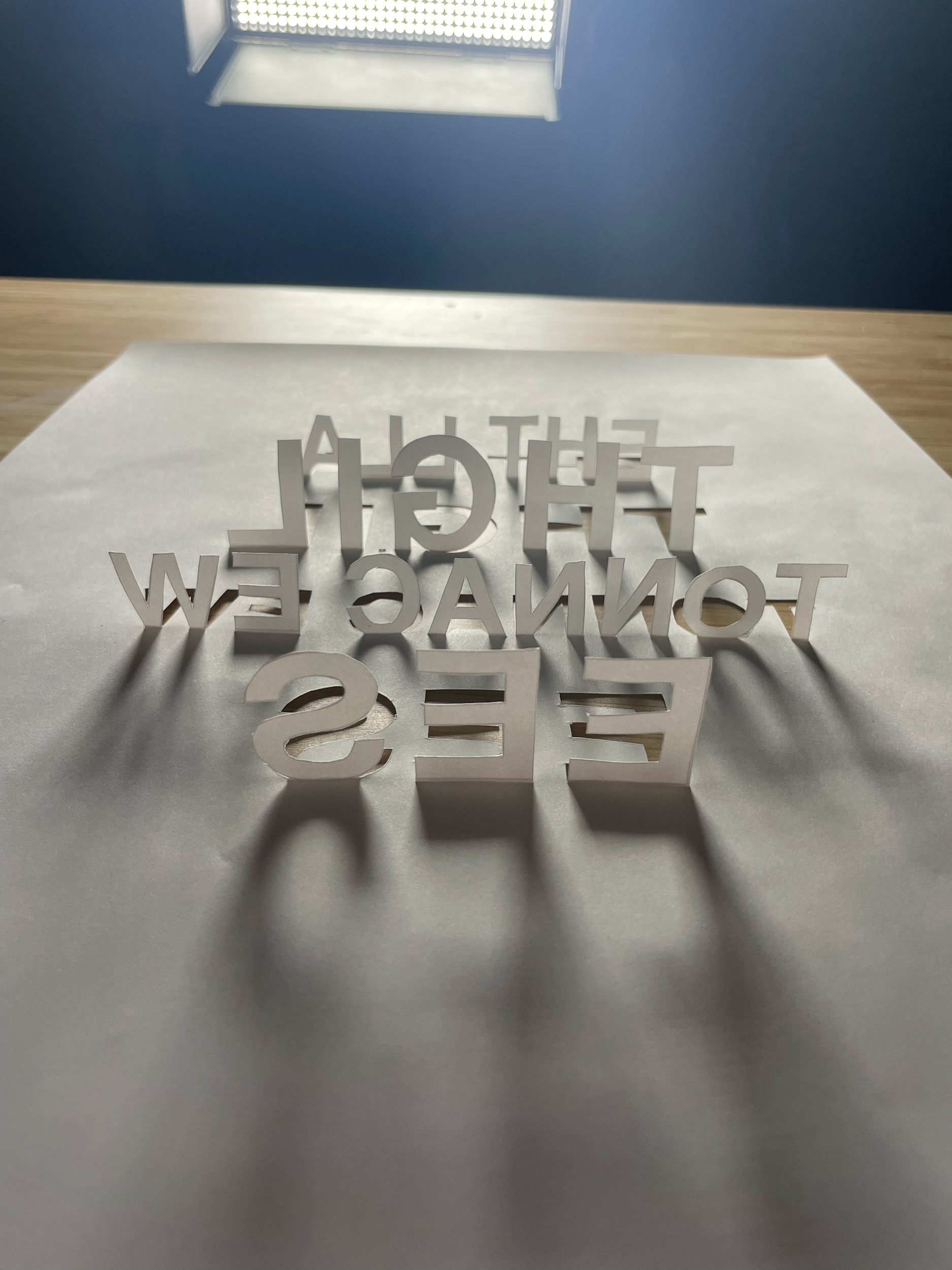For the non-digital type, I explored shadows and how they can represent this idea of an unseen light source. I cut the letters out of paper, folded them up, cast light against them to make the shadows, and photographed each word. After the words were compiled and edited together, I designed the rest of the cover with an image of the Paris skyline.
