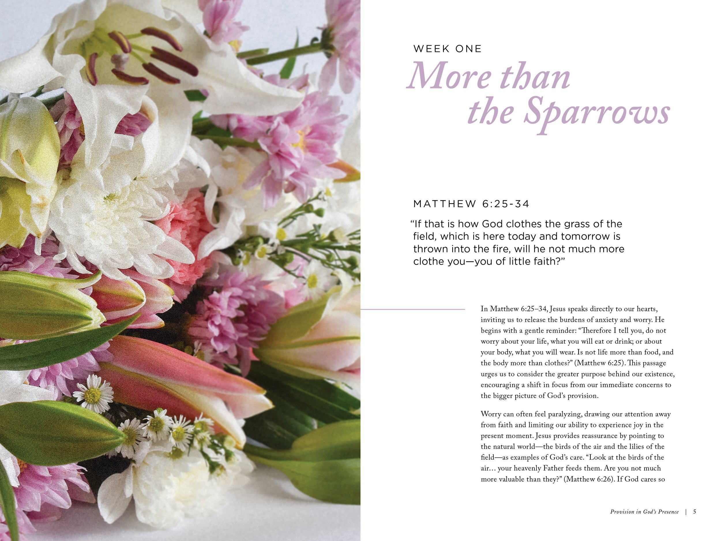 Created with women ages 18–25 in mind, the brand seeks to meet young Christian women where they are with content that feels feminine yet strong, trustworthy, sophisticated, and deeply grounded in Scripture. For this reason, the imagery of flowers and birds became central to the brand’s identity, symbolizing both the beauty of creation and the wonder of a God who faithfully sustains and provides, despite our sinful nature.